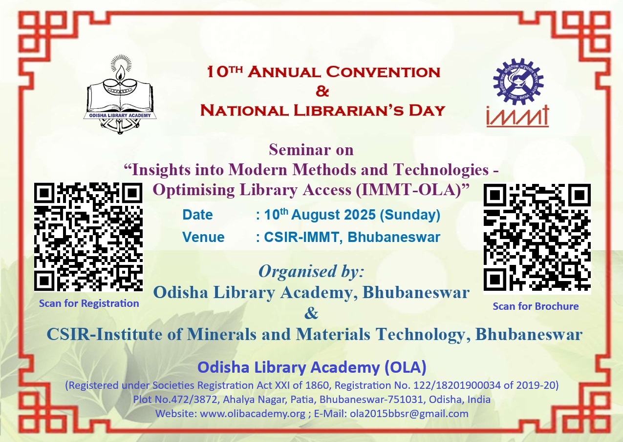 Organized by Odisha Library Academy & CSIR-Institute of Minerals and Materials Technology, Bhubaneswar